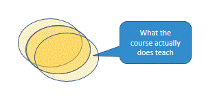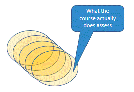 Let's strip away all those intermediate accretions. Go back to the initial step, "What the area of practice actually requires." and see how the final step, "What the course actually assesses" relates to it. There may be about 15% overlap. (Do the maths on the diagram and it doesn't work, but then the real world is much messier than this discussion—sorry!)