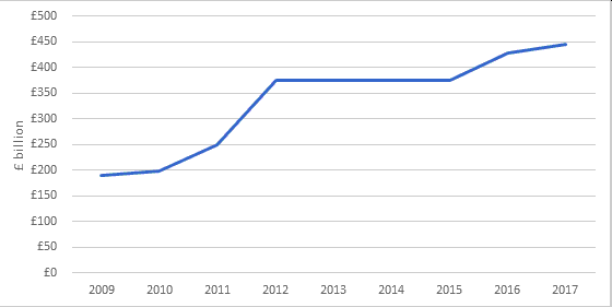 Figure 16: Quantitative easing in £ billions since 2009[19]