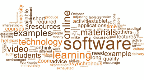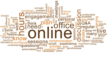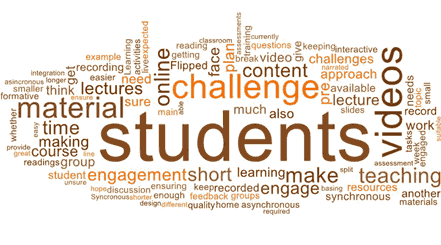 The following word cloud was used to extract common threads from the respondents’ answers. Student engagement and online interaction stand out.
