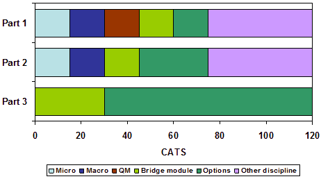 University B operates a curriculum based on a pattern of 8 (15 CATS) units per Part. Figure 3 summarises the structure of the curriculum.