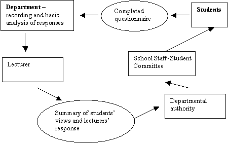 In an attempt to implement and deliver a teaching programme of the highest quality and to maintain consistency in this policy, measures exist to record how well this aim is being met. One of these measures is the direct questioning of students about the modules they have taken. This serves to give immediate, qualitative feedback to the tutor concerning his/her module content, teaching performance and administration. These results are used to alter, where the tutor deems appropriate, the module before it is delivered in the following year. Thus, this system gives students a direct input into teaching design, delivery and administration.