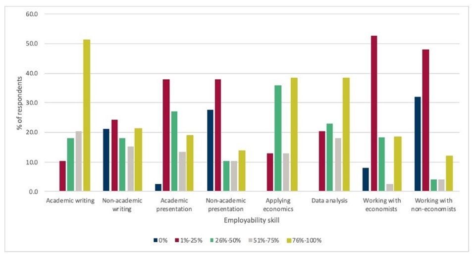 In light of the increased policy focus on employability in higher education, and parallel criticism of economics degrees, this research report considers whether economics departments are providing sufficient targeted opportunities in their degrees for students to develop skills that are valued by employers. We do not make a judgement about whether degrees are the appropriate vehicle for developing employability skills, leaving that discussion for elsewhere, but instead focus on what the best approach to take is, assuming an economics department has made a choice to do more in this area.