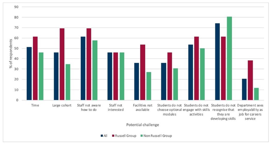 Is it by no means an easy task, for an individual lecturer or a whole department, to effectively embed employability skills development into an economics degree. The main challenges, shown in Figure 6, are difficulties with getting students to engage and incentivising and supporting staff.