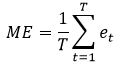 Given a series of interest denoted as yt and a set of forecasts of it denoted as ft, where t = 1, ..., T, associated forecast errors can be generated as et = yt - ft. The ME can then be derived as below: