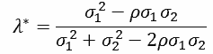 To illustrate the above, consider the results obtained when the initial values provided in the spreadsheet, {σ12, σ22, ρ} = {2, 12, -0.6} are employed. As can be seen, this results in MSFE[ftc|λ*] = 0.77 and λ* = 0.25. From this, it can be seen that: