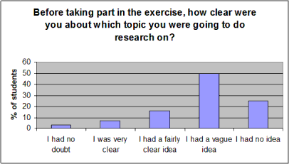 The questionnaire results confirm that, at the start of the exercise, most students were very unclear as to what topics to choose: