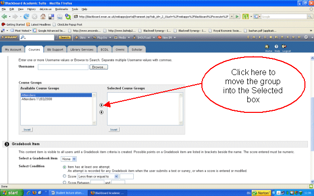 Fortuitously however, a (perhaps somewhat) less well known tool recently added in recent upgrades of the first of the VLEs listed above (Blackboard) allows instructors to exercise precisely the selectivity suggested above via the VLE itself. Thus, while making notes available via VLEs may be part of the problem, the technology potentially also provides the means to be part of the solution.