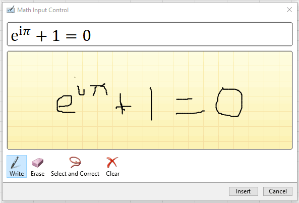 Office applications including PowerPoint, Excel and OneNote can create mathematical formalism by drawing with a tablet device.