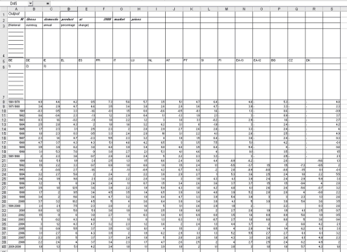 We will use Table 10 from the European Economy Statistical Annex. This shows economic growth rates for all 27 EU countries plus the USA and Japan (see site 8 in our links to free economic data)